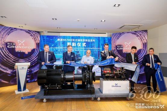 致辞结束后,嘉宾上台为新品剪彩,共同见证静源NK/NKE卧式端吸泵在中国的首次亮相。