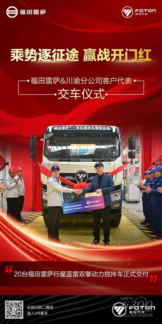 福田雷萨20台行星蓝雷双擎动力搅拌车正式交付川渝分公司客户代表