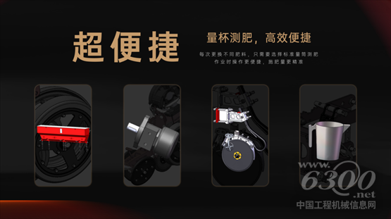 超便捷,想用户所想。量杯施肥,操作便捷更精准;一键卸种肥,快速排出省时间;强压功能,针对不同农艺、垄形需求,进行强制同步仿形作业或独立仿形作业;限深调节,快捷方便,贴合性更好;镂空限深轮,复杂工况通过性更强;全中文触控屏,更符合中国用户需求。