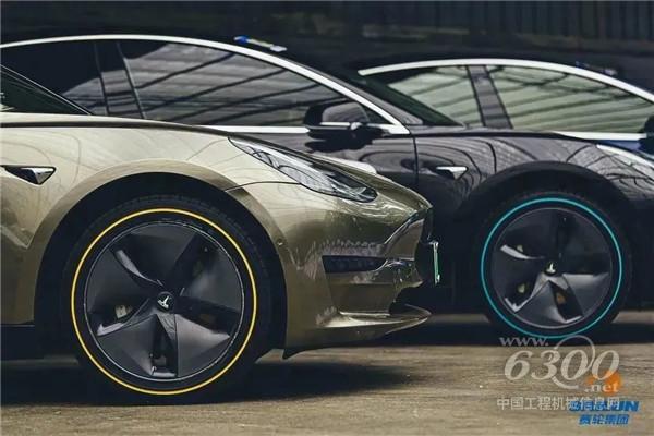 液体黄金彩边胎搭配特斯拉,成为成都街头一道靓丽的风景线