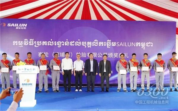 5月8日,赛轮集团柬埔寨工厂优秀员工表彰大会隆重举行。柬埔寨柴桢省省长 Men Vibol,国橡中心主任、赛轮集团名誉董事长袁仲雪,赛轮集团董事长刘燕华、总裁谢小红等莅临现场。