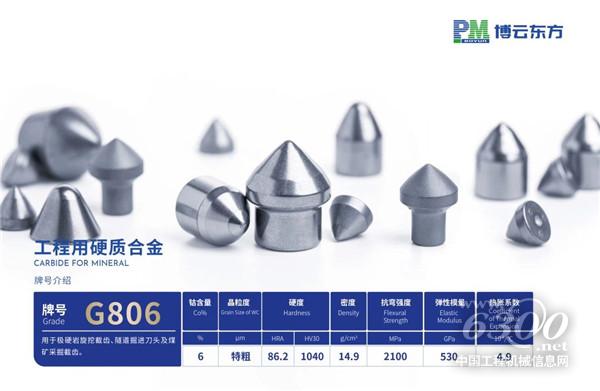 此次展会,博云东方重点展示一款旋挖钻机上的核心部件,它被誉为旋挖钻机上的“铁齿钢牙”,牌号是G806特粗晶硬质合金截齿。大家都知道旋挖钻的功能,在青藏铁路修建过程中,旋挖钻机在恶劣的自然环境和复杂的地质条件下完成了许多极为艰巨的桩基工程,旋挖钻进工法得以迅速兴起,并已成为我国基础孔灌注桩的首要施工工法,面对坚硬岩层的桩基施工。硬质合金截齿在循环冲击及研磨下表面萌生疲劳热裂纹并扩展,造成合金崩块导致截齿快速失效,而特粗晶硬质合金截齿因WC晶粒粗大,Co相平均自由程大,能有效抑制疲劳热裂纹扩展,提高截齿的耐磨性,有效保持截齿刀头的入岩角度,提高钻进工效。