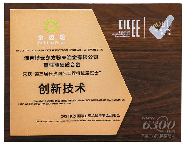 该奖项由长沙国际工程机械展览会组委会邀请和组织权威国际顾问、国家级协会负责人、院士和专家组成专家评审团,客观、公正进行产品的评选。此次CICEE参展商共计约1500家,2万件参展产品。博云东方以高性能特粗晶硬质合金和纳米硬质合金的卓越产品性能、案例及应用获得各位评委的高度好评并斩获“金齿轮奖”荣誉。