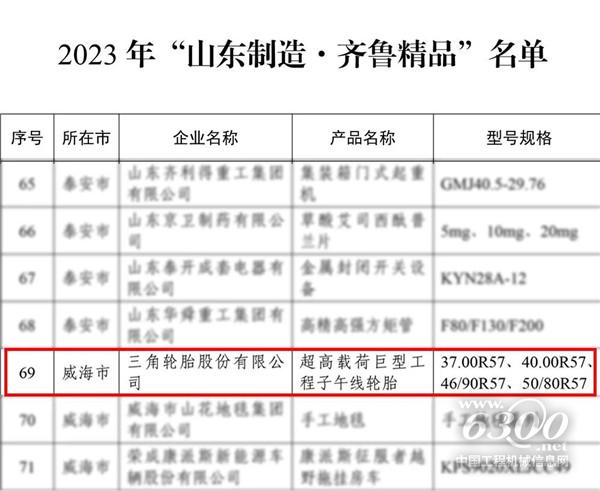 6月30日,山东省工业和信息化厅下发通知,对2023年“山东制造·齐鲁精品”名单进行公示,三角轮胎的超高载荷巨型工程子午线轮胎入选该名单。