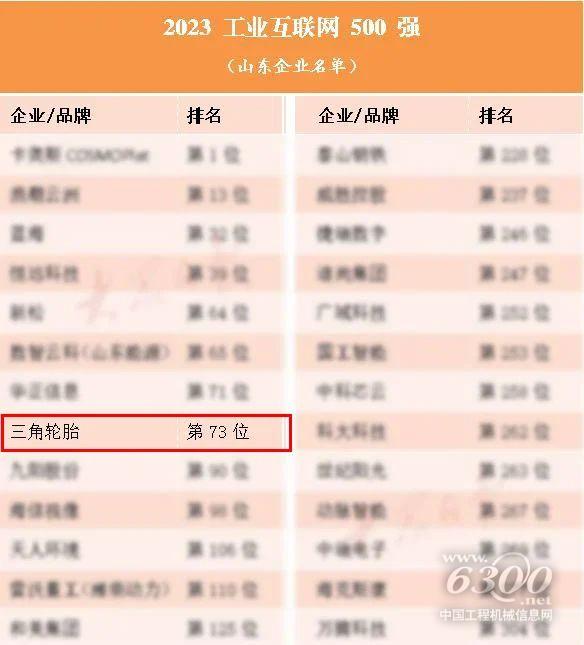 6月27日,中国科学院《互联网周刊》联合eNET研究院、德本咨询发布了“2023工业互联网500强”名单,三角轮胎登榜,位列73位。