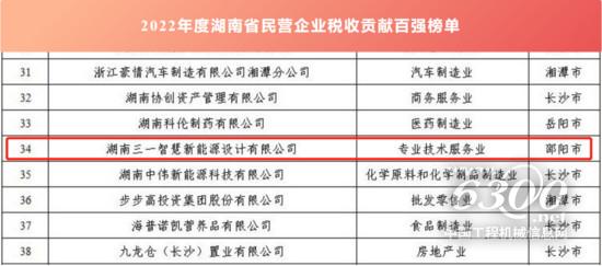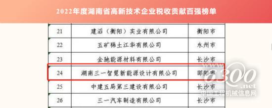 近日,湖南省财政厅公布了2022年度“湖南省高新技术企业税收贡献百强榜单”,对在税收缴纳方面贡献突出的先进企业予以通报表扬,湖南三一智慧新能源设计有限公司荣获2022年度“湖南省高新技术企业税收贡献第24位”、2022年度“湖南省民营企业税收贡献第34位”。