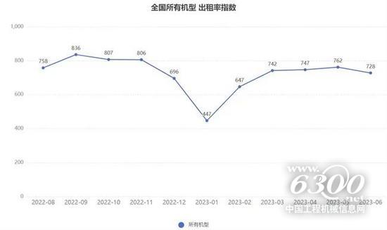 2023年6月升降工作平台出租率为728点,环比下降4.5%,较2022年同期增长4.4%。6月份升降工作平台所有机型出租率环比出现了普降态势,其中≤6m剪叉平台平均出租率78.7%,从3月以来首次回落到80%以下,与2022年同期基本持平;14-16m臂架式平台出租率环比降幅最大达到8.2%,但与2022年同期相比却提高了10.9%;2023年6月与2022年同期相比,除40m以上臂架式平台外其他机型出租率均处于上升趋势。(出租率是以台天数为基准进行计算,100%出租率对应1000点。)