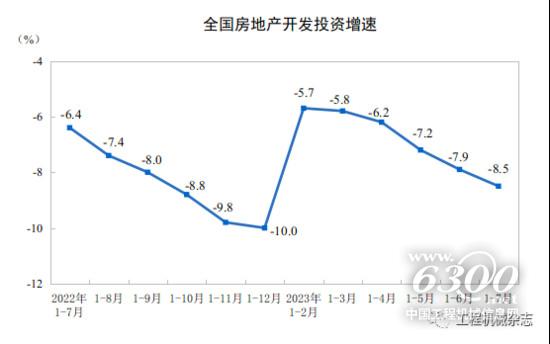 房地产消费需求及信心尚不足,恢复有待时日,叠加土地购置费及房屋新开工面积下滑,房地产行业以“保交楼”和“去库存”为主,投资短期内难以有效提振。2023年1—7月,全国房地产开发投资67717亿元,同比下降8.5%。1—7月,房地产开发企业房屋施工面积799682万平方米,同比下降6.8%。房屋新开工面积56969万平方米,下降24.5%。2023年7月,房地产开发景气指数为93.78,持续下降。