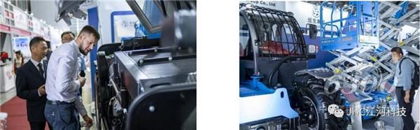 垣发集团展品一经展出,获得了国内外客户的驻足观看和深入交流。尤其是公司新型的多功能伸缩臂叉装机 T5018,因其最大作业高度可达 18 米、最大载重量可达 5 吨,实现整车前轮、四轮、蟹形转向,无极变速、电液比例控制等方面的优越性能,获得了国内外租赁市场客户的广泛赞誉。
