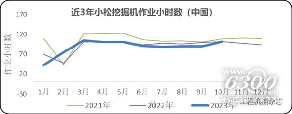 2023年10月,中国地区小松挖掘机开工小时数为101.7小时,同比增长0.2%,这也是继2023年3月,本年度单月第2次增长。