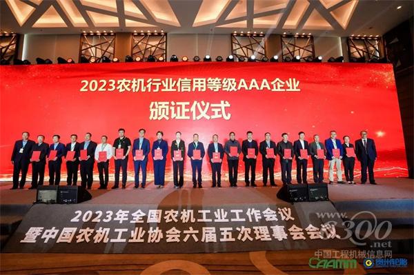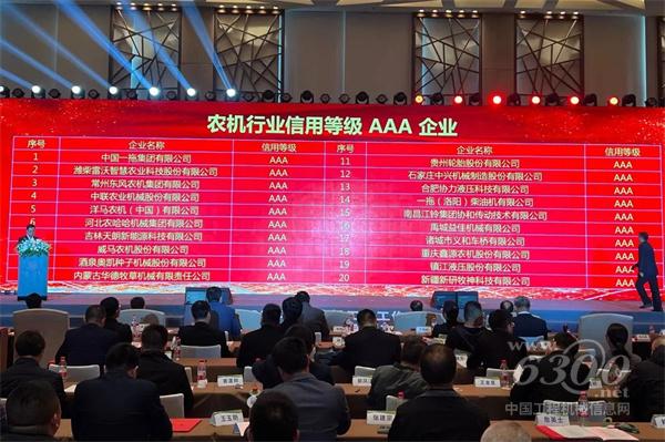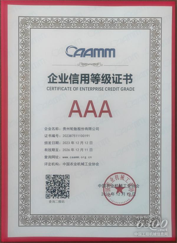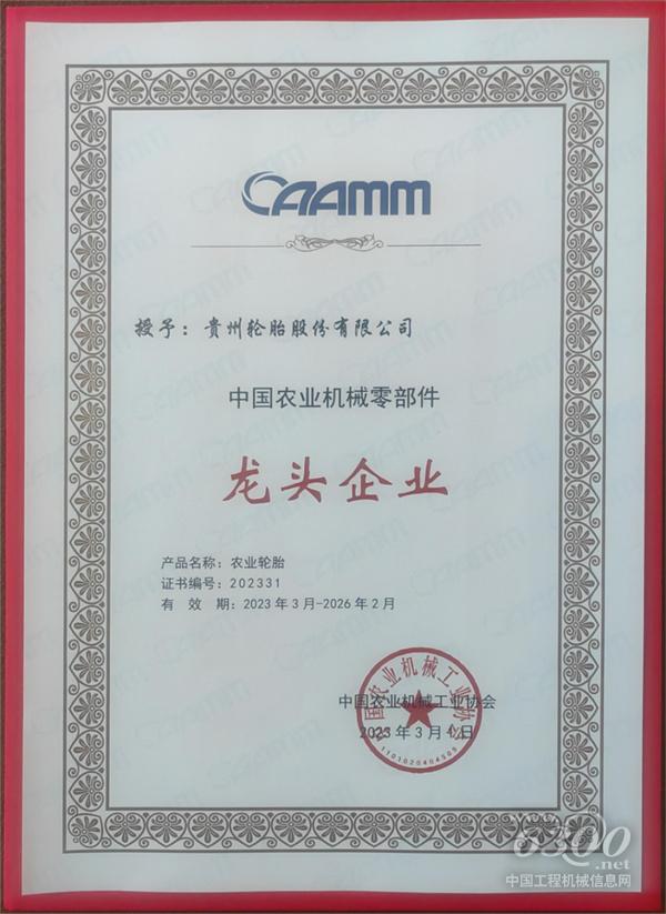 大会还进行证书颁发及表彰活动, 经协会组织的主机企业及业内专家组的严格评审,贵州轮胎凭借在市场占有率、产品质量、技术创新及质量管理、经济效益、社会效益等方面的综合实力,以及先进的经营理念和优质的品牌满意度成功揽获农机企业AAA级信用企业评定。同时,中国农业机械工业协会授予贵州轮胎为“中国农业机械零部件龙头业”以表彰对贵州轮胎在农业机械轮胎板块取得成就的认可。