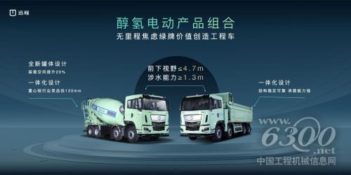远程X7M醇氢电动自卸车面向城建渣土运输场景打造,采用一体化设计,结构稳定可靠,承载能力强,路面涉水能力超过1.3米,爬坡度大于43%,在保障用户安全用车的同时还能满足用户高效出勤的需求。针对商砼运输场景打造的远程X7M醇氢电动搅拌车,采用全新上装罐体方案,装载空间提升20%,自重轻1.3吨,显著提升了运输收益。安全性方面,远程X7M醇氢电动搅拌车采用底盘上装一体化无副梁设计结构,重心较竞品低120毫米,侧倾稳定性更好。