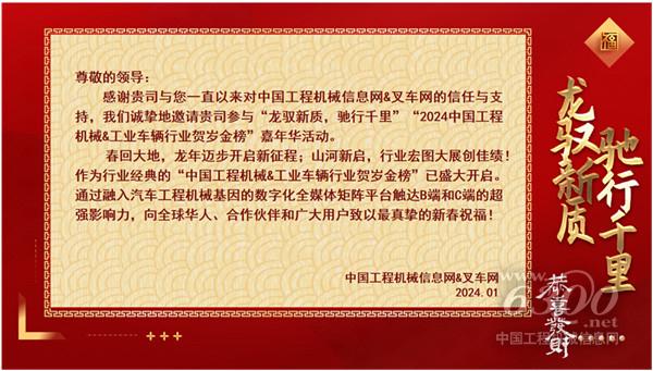“龙驭新质,驰行千里”“2024中国工程机械&工业车辆行业贺岁金榜”嘉年华邀请函