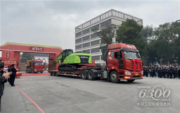 伴随着曾光安响亮地宣布:“2024年柳工开门大吉,发车仪式正式开始!”运载着各型号装载机、挖掘机、平地机、叉车等近20台机械设备的运输卡车排列成一条机械“长龙”,从总部大门出征,发至全国各地,奔赴各类工况。职工代表们分列两侧,大家齐齐鼓掌,掌声应和着铿锵的锣鼓声浪,振奋人心,斗志昂扬。