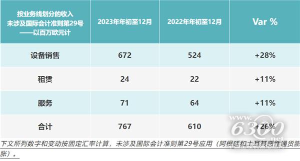 总体看,设备销售额增长了+31%,租赁业务增长了+14%,服务增长了+13%。