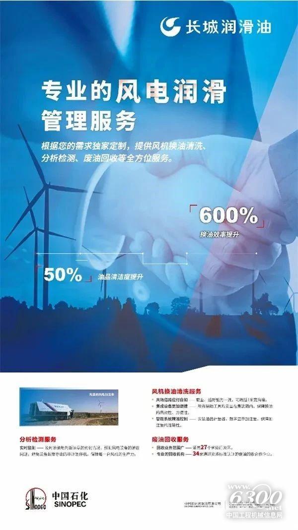 作为中国润滑油行业的领军者,中国石化长城润滑油早在2002年就开始了风电配套润滑技术研究,除了具备全面覆盖风电设备常用润滑齿轮油、润滑脂及防冻液的风电润滑产品线,还打造了一套由风电换油服务、油品监测体系、废油回收业务相辅相成的专业风电润滑管理服务能力。能够快速响应客户需求,直抵风场就近提供专业服务,换油效率提高600%,油品清洁度提升50%,大幅提高了客户维保效率,降低了风机非计划停机率,同时消除客户对废油处理的后顾之忧。