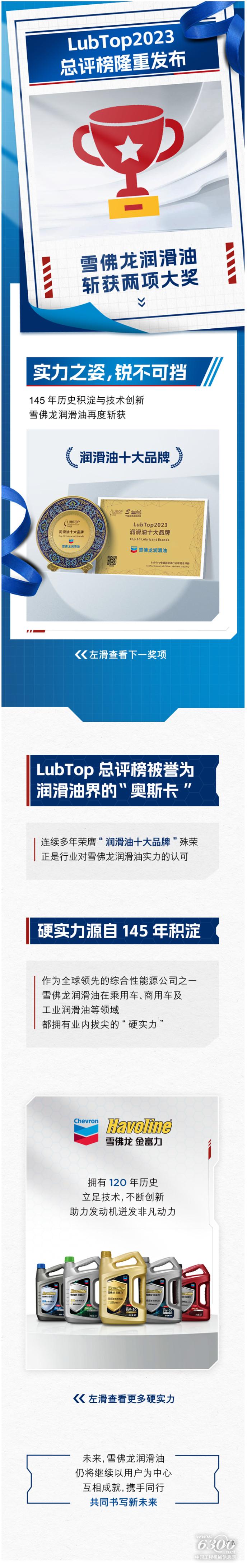 载誉而归,雪佛龙润滑油斩获LubTop2023总评榜两项大奖
