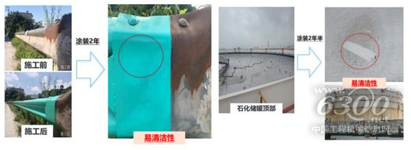 在高速围栏立面涂装案例中,高速围栏长时间在户外暴露,受到沙尘和风雨的侵蚀,围栏表面涂层已剥落并布满了锈迹。但在涂装大金氟化工ZU-201氟碳涂料之后,历经2年的风吹日晒也依然保持可喜的固色度,且相比市面上相对普通的氟碳涂料,ZU-201还拥有高度易清洁特性,让附在表面的灰尘能够轻松擦拭干净。在石化储罐平面涂装案例中,我们把镜头从内陆转移到沿海港区,氟碳涂料ZU-201的强耐候性同样经得起盐碱地区的考验。当前,大金氟化工还在上海、武汉、保定、怀化等全国范围内进行12月以上的试涂实地测试。