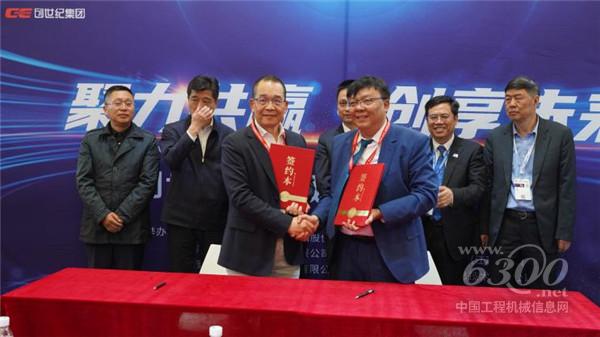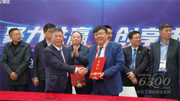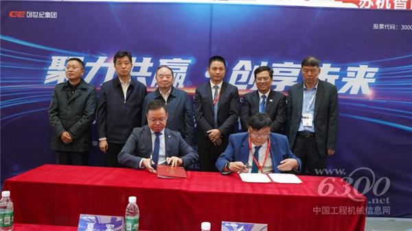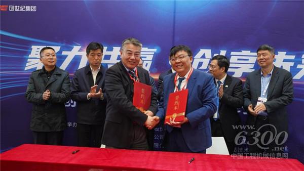 (创世纪集团集团办负责人罗育银先生和乔那科数控装备(江苏)有限公司董事长刘超先生签约、拍照留念)