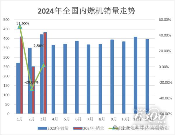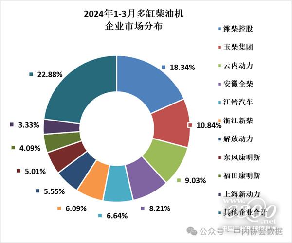 3月,柴油内燃机销售54.43万台(其中:乘用车用1.85万台,商用车用22.02万台,工程机械用9.56万台,农机用17.03万台,船用0.56万台,发电用3.22万台,园林用0.12万台,通用0.07万台),汽油内燃机销量376.62万台。1-3月柴油机销量134.83万台(其中乘用车用3.90万台,商用车用55.01万台,工程机械用22.66万台,农机用42.74万台,船用1.45万台,发电用8.60万台,园林用0.20万台,通用0.28万台),汽油内燃机销量955.77万台。