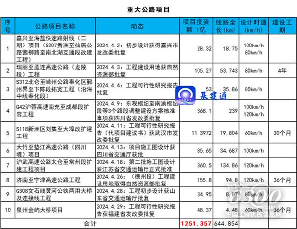 3.2024 年4月份,重大铁路、公路工程获批总投资超1900亿元;