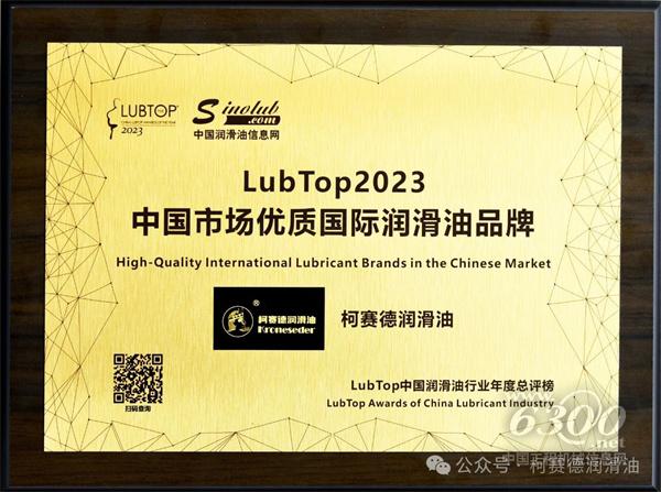 柯赛德润滑油获称LubTop2023年度中国市场优质国际润滑油品牌