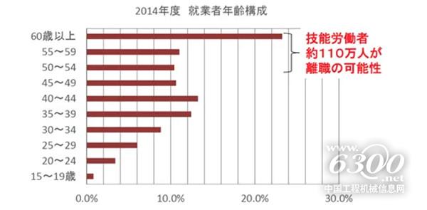 2014年日本建筑业从业人员年龄构成图