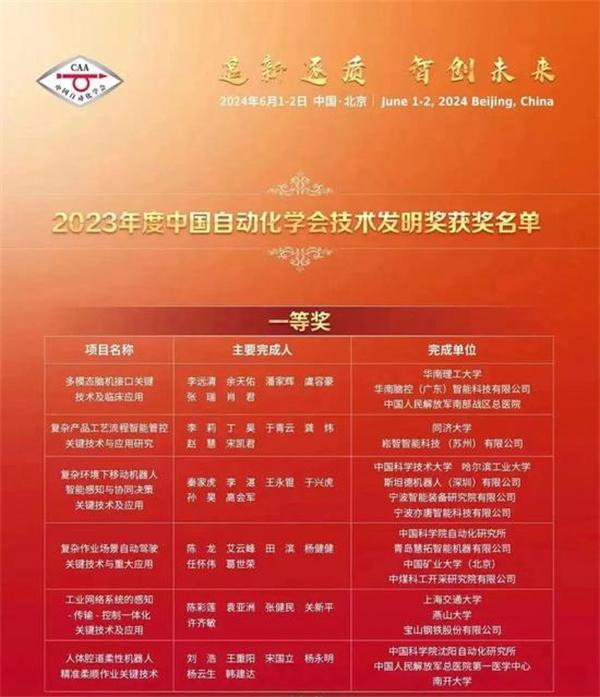 行业唯一!中科慧拓获评2023年度中国自动化学会技术发明奖一等奖