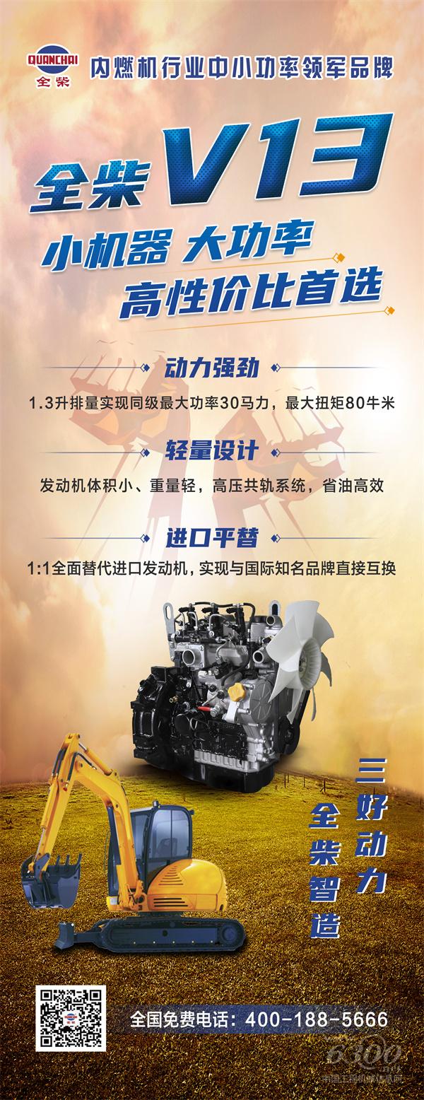 在绿色环保和智能化趋势的推动下,小微挖市场的发展前景更加广阔。全柴V13发动机1:1全面替代进口发动机,实现与国际知名品牌直接互换。作为小微挖市场配套的主力军,全柴将继续以其卓越的性能和技术优势,为中国小微挖市场的发展提供强有力的支持。