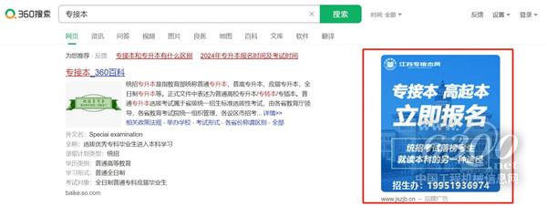 为通过创意营销提高品牌影响力,江苏专接本网和360智慧商业展开了“启明星”产品的合作,投放了品牌官网链接、全年全时段全国展现,用户搜索“专接本”时便可在360搜索首屏右侧看到品牌信息。在获得稳定曝光量的同时,江苏专接本网推广成本大幅降低,也成功吸引了目标用户,降本增效成绩显著。
