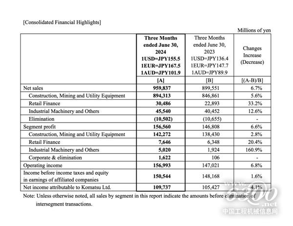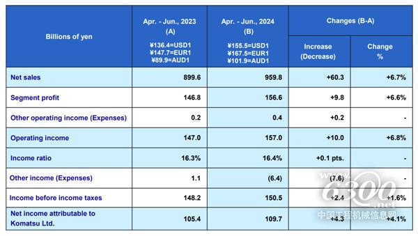 小松2024财年Q1财报数据出炉:中国市场销售额大增46.4%