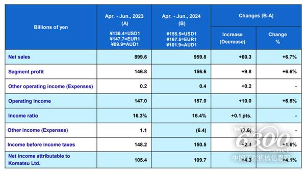 4. 小松一季度财报数据出炉:中国市场销售额大增46.4%;