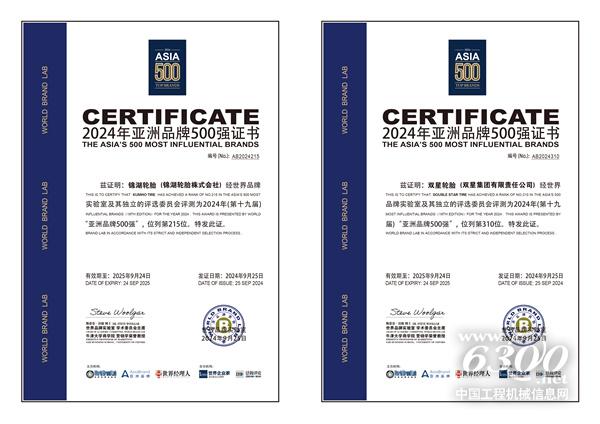 9月25日,由世界品牌实验室(World Brand Lab)主办的2024年亚洲品牌大会在香港召开。双星集团旗下两大品牌锦湖轮胎、双星轮胎同时入选“亚洲品牌500强”榜单。其中,锦湖轮胎凭借不断增长的发展实力和品牌影响力,位居“亚洲品牌500强”轮胎品牌第二位;双星轮胎凭借在消费者群体中优秀的品牌认知和品牌形象,位居中国轮胎行业第一位,持续领跑中国轮胎品牌。