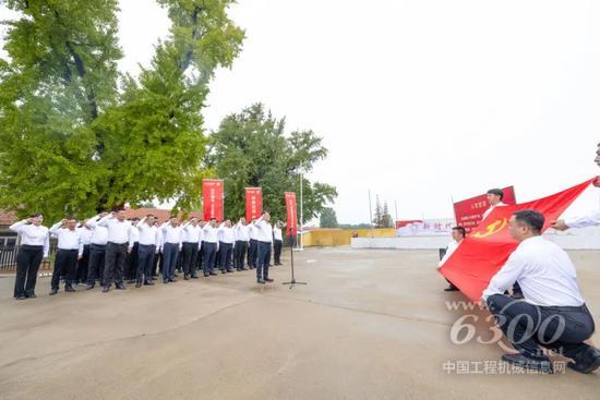 在环海铁工厂旧址,全体党员整齐列队,面向党旗,郑重地举起右手重温入党誓词,庄严的誓词回荡在历史的空间,激励着每一位潍柴人不忘初心,牢记使命。