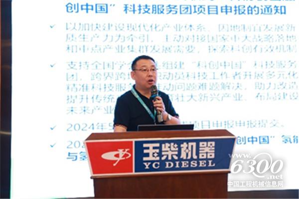 刘家凯副主席代表广西省科协致辞,他表示,“科创中国”氢能与氢发动机科技服务团汇集中国内燃机学会众多高水平专家,还将在广西成立“中国内燃机学会广西科创中心”,必将有力提升以玉柴集团为代表的内燃机龙头企业科技创新水平,推动我区制造业高质量发展,助力我区加速形成新质生产力。希望科技服务团坚持聚焦搭建平台,进一步促进科技交流合作。聚焦产业振兴,进一步激发科技创新活力。聚焦人才培养,进一步促进人才成长。自治区科协将认真发挥好桥梁纽带作用,为科技服务团走进广西提供高质量的服务和保障,共同为产业高质量发展贡献科技力量。