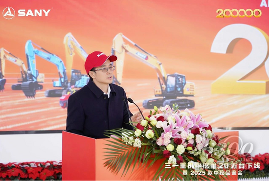 三一集团副总裁、三一重机中挖公司总经理胡奇回顾了三一挖掘机的发展历程和中挖的全球化发展之路。他表示,三一中挖在海外市场不断受到认可,销量持续攀升,三一中挖将时刻牢记“品质改变世界”,以20万台作为新的起点,创造新的辉煌。