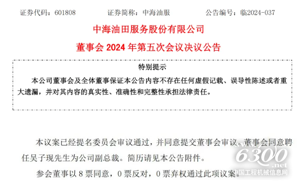 12月19日,中海油服发布公告,聘任吴子现先生为公司副总裁