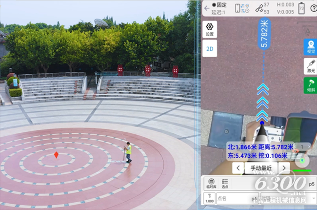 激光眼测量,微光级摄像头动态指示放样路线,支持激光点放样,选点更精准。