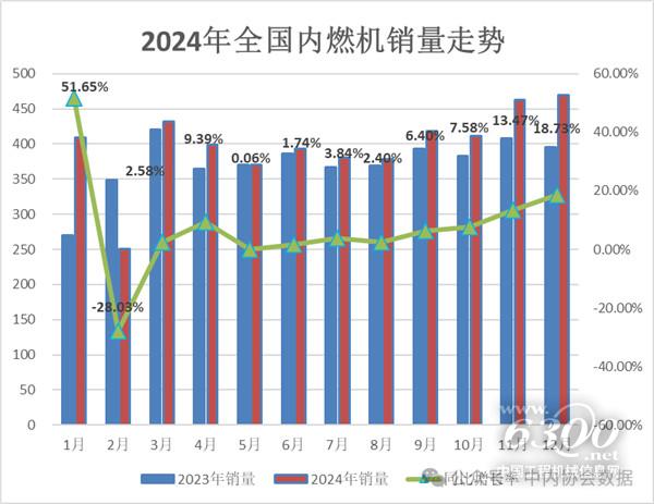 12月,内燃机销量469.94万台,同比增长18.73%,市场整体表现较为平稳;