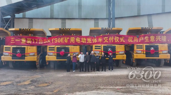 近日,三一重装在湖北当阳成功交付17台SKT90E型纯电宽体自卸车,这批车辆将服务于当地砂石骨料矿山的石灰石运输,以高效、智能、环保的优势助力矿山绿色运营。