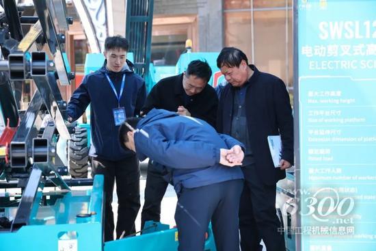 在展示区,山河智能集中展出了SWSL系列电动剪叉、SWSL-C系列履带剪叉、SWSL系列自行走越野剪叉、SWA/SWT系列臂车、SWTH系列伸缩臂叉装车等四大系列八款高空精品,电动化产品占比100%,一半以上为新品,吸引众多客户驻足体验。