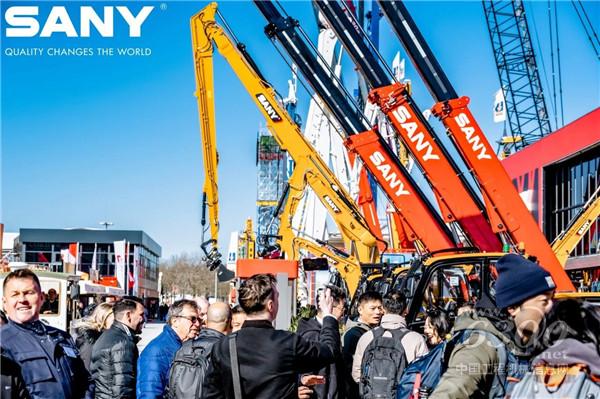 在三一展区,首款1吨级微型挖机SY10U、符合欧五排放的短尾挖机SY26C、SY215C NLC等6款配备双节臂、加长臂及专属属具的挖机、针对欧洲市场开发的40吨级抓料机SMHW40G5、轻型压路机STR27C-10、欧洲全法规第一长泵SY68 RZR6-180等组成欧洲产品矩阵整齐列队,引发欧洲客户争相询问、抢购,行情十分火爆,展品刚开展就售罄的情况比比皆是。