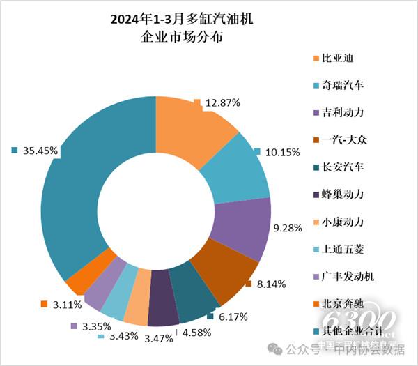 乘用车用在多缸汽油机占比为97.04%,3月销量174.38万台,环比增长32.68%,同比增长-0.40%;1-3月累计销量453.54万台,同比增长6.68%。比亚迪、奇瑞、吉利、一汽-大众、长安汽车、蜂巢动力、小康动力、上通五菱、广丰发动机、广丰发动机销量排在前列。