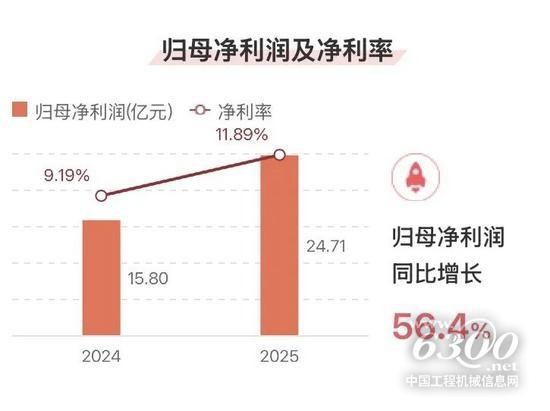 4月30日,三一重工发布2025年一季报。今年1-3月,公司营业收入210.49亿元,同比增长19.18%;实现归属于上市公司股东净利润24.71亿元,同比增长高达56.4%。