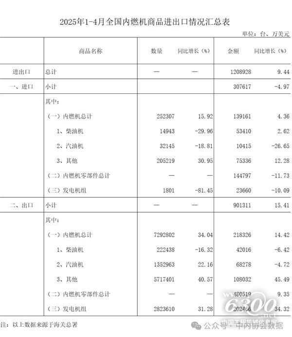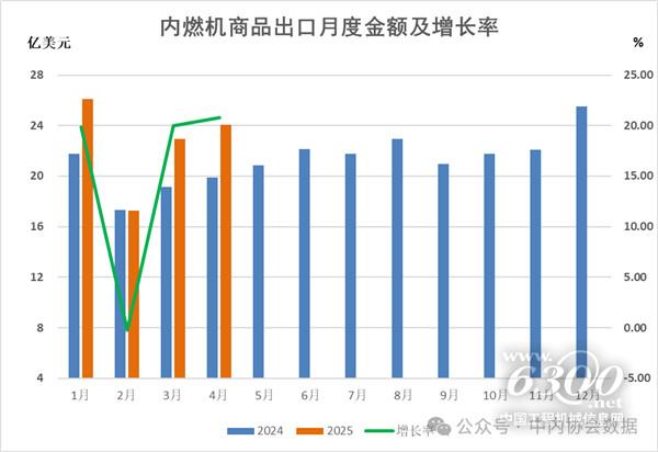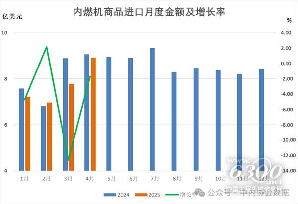 2025年1-4月内燃机行业进出口总额120.89亿美元,同比增长9.44%