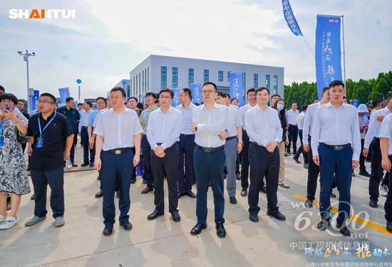 王志坚、骆汉宾、苏子孟、李士振及中建八局总工程师亓立刚、山推股份公司总经理张民等领导嘉宾共同按下山推全新L0G0及A战略启动按钮,宣告山推正式迈进品牌与技术升级的新时代。