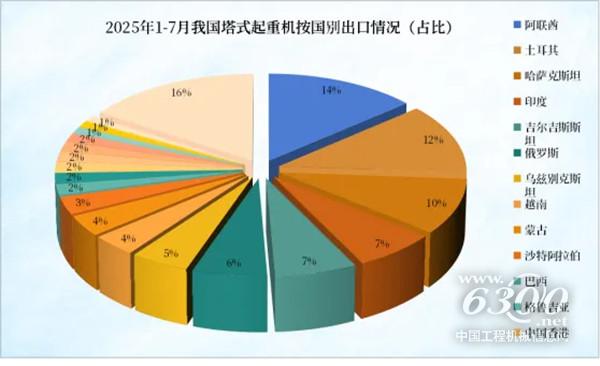 而海关总署最新数据显示,7月我国共出口塔式起重机612台,总金额为0.64亿美元,同比增幅达86.59%和68.34%;1-7月累计出口3906台,总金额4.19亿美元,同比分别增长50.93%和41.34%。协会与海关数据存在统计口径差异,协会统计主要反映大型制造企业的销售情况,而海关数据则涵盖了所有的出口产品,两者共同印证了出口市场的繁荣态势。