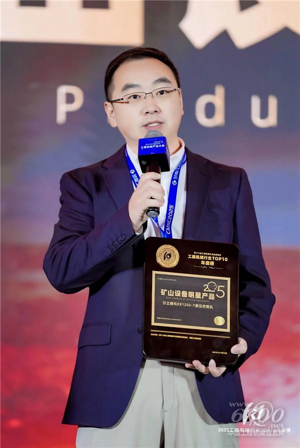 本届CMIIC2025盛会评选过程严谨、标准严格,综合了网络投票、终端用户真实评价以及行业权威专家的多维度专业评审,最终遴选出各细分领域具有代表性的标杆产品。日立建机EX1200-7荣膺年度“矿山明星”,其在严苛作业环境下的产品力广受认可,且具有优质的行业创新价值。日立建机销售(中国)有限公司营销事业矿山总经理张雁斌先生出席典礼并领取奖项。