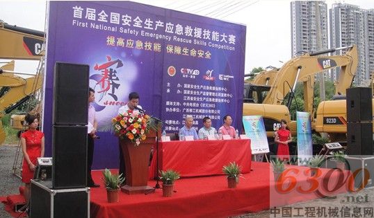 比赛开始前,江西省安全生产监督管理局华人民巡视员作了激情洋溢、振奋人心的开场致辞。华巡视员列举了进来我国自然灾害频发,如汶川地震、舟曲泥石流、江西省火车轨道被埋及洪涝灾害等等,强调关键挖掘机能起到非常重要的作用,本次大赛目的就是要验证挖掘机操作手过硬的操作水平。因此,不断提高应急技能才能有效保障生命安全,华巡视员勉励到会参赛人员不断提高自己的操作技能,最后,预祝“首届全国安全生产应急救援技能大赛”圆满成功。省安全生产应急救援指挥中心康斌主任和江西柳工夏勇源常务副总经理也先后致辞,由省安全生产应急救援指挥中心刘主任宣布比赛裁判员名单、大赛项目和规则。