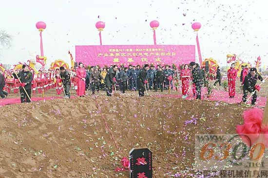 图为武陟县五大班子领导杜明乾、傅秋生、翟建国、宋土生等,在该县第一季度项目集中开工奠基仪式主会场为天创风电产业园项目奠基培土。